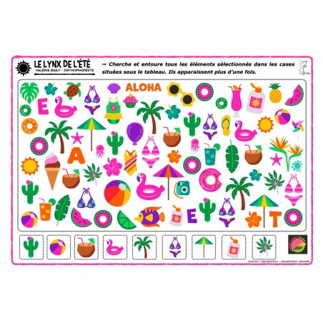 ➙ Jeu du lynx : dans un tableau d'illustrations de l'été, chercher et entourer des éléments donnés.