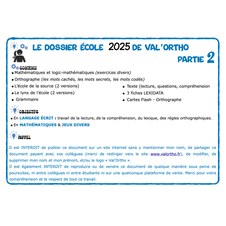 ● + 3 fiches LEXIDATA et des cartes Flash Orthographe