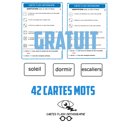 ● Deux fiches gratuites de consignes pour les Cartes Flash Orthographe à utiliser avec un dé de 1 à 6 + 42 nouveaux mots.