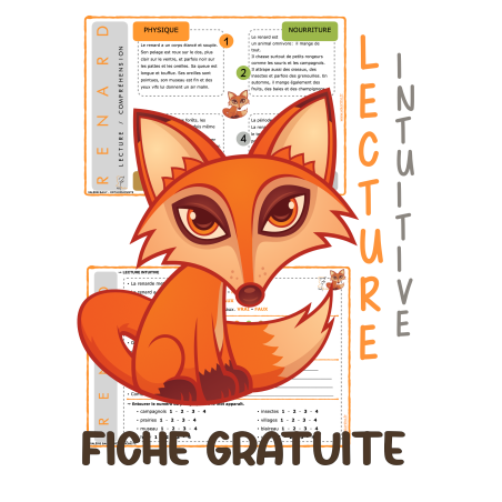 ● Fiche gratuite de lecture intuitive sur la vie du renard. Ce dossier présente un texte structuré en première page et un questionnaire en seconde page. Il s'agit d'une activité qui vise à amener le lecteur à reconnaître rapidement et globalement les mots, les phrases, le thème étudié et à comprendre l'ensemble. Dans cette activité, il n'est pas utile de passer par le déchiffrage systématique. Le lecteur s'appuie sur: la forme visuelle du mot, le contexte, la mémoire lexicale, l'anticipation.